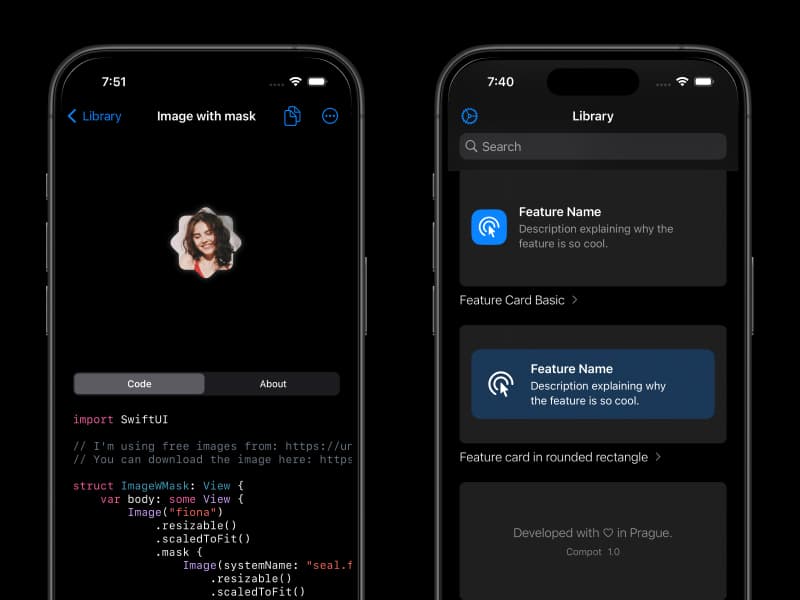 Compot is available for free on the Apple App Store and so far offers 100+ crafted SwiftUI components and templates, from buttons to welcome screens, product cards, or banners. There are no package dependencies – just pure vanilla SwiftUI code that you can copy and paste directly into your Xcode project.
